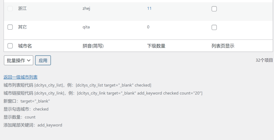 Dcitys怎么設置城市列表頁面admin2023年7月2日建站幫助 城市列表頁面顯示所有的城市鏈接,設置頁比較簡單,首先在后臺添加一個頁面,輸入城市列表的簡碼,簡碼為 dcitys_city_list ,相關參數(shù)在城市列表下方,其中尾部關鍵詞為在站群設置中進行填寫。 生成的列表如下 標簽# 使用幫助# 城市分站# 插件# 站群 上一頁 文章 城市分站插件基礎設置一 下一頁 文章 如何提高網(wǎng)站收錄量、提升網(wǎng)站搜索權(quán)重 相關文章 DcityS城市站群3.1.0更新功能 Dcitys城市分站插件3.0.6新功能 Dcitys城市分站插件3.0升級說明 Dcitys 城市分站更新記錄 分站城市列表頁設置 簡碼匯總-Dcitys城市分站設置 Dcitys城市分站?使用配置匯總 分站發(fā)布不同文章-Dcitys城市分站 小工具-Dcitys城市分站 分站頁面添加城市名-Dcitys城市分站 分站設置不同聯(lián)系方式-Dcitys城市分站 網(wǎng)站底部分站鏈接-Dcitys城市分站