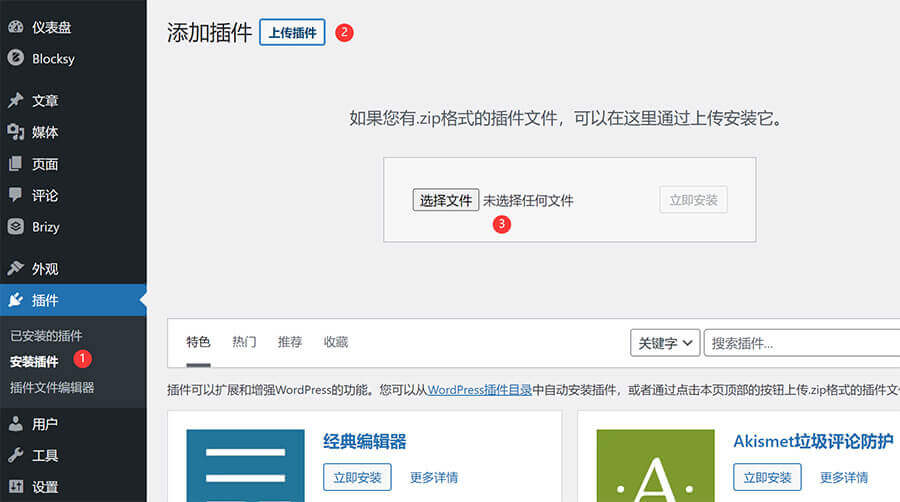 下載后直接在網(wǎng)址后臺(tái)上傳插件進(jìn)行安裝,點(diǎn)擊 安裝插件/上傳插件,選擇Dcitys的安裝包,再點(diǎn)擊立即安裝,安裝后啟用