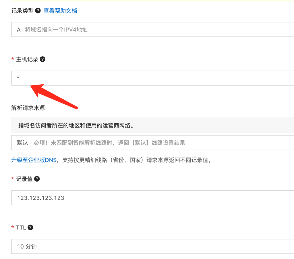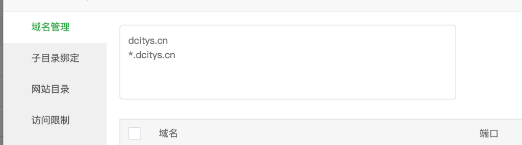2、二級(jí)域名形式,生成的連接形式如:https://beijing.dcitys.cn、https://shanghai.dcitys.cn,二級(jí)域名形式的設(shè)置稍復(fù)雜些,域名要添加泛解析,添加A類型的主機(jī)記錄 * 到自己的服務(wù)器ip(記錄值),然后在同樣添加主機(jī)記錄 @ 。注意二級(jí)目錄形式如何設(shè)置ssl,需要申請(qǐng)泛域名的ssl,否則會(huì)出現(xiàn)錯(cuò)誤。