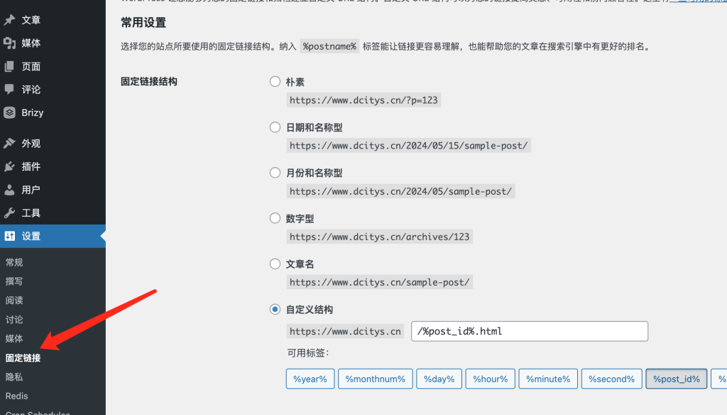 固定鏈接在后臺(tái)設(shè)置中進(jìn)行設(shè)置