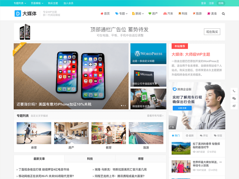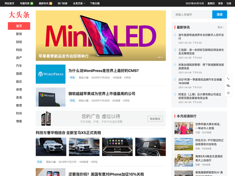 大頭條WordPress主題自媒體、頭條新聞、博客主題