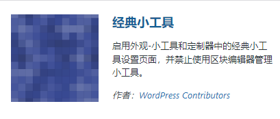 WordPress5.0版本后,默認(rèn)使用Gutenberg(古騰堡)編輯器,邊欄小工具同時也會變成塊編輯,這樣對習(xí)慣使用原來小工具的用戶來說很是不方便,還好官方提供了經(jīng)典小工具插件,只需要在后臺插件安…