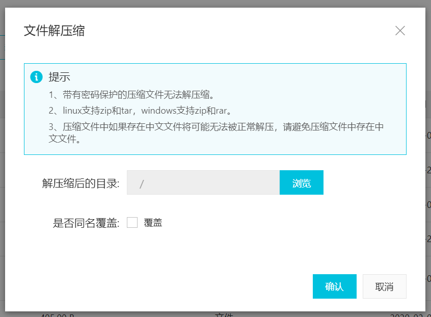 5、通過文件管理器上傳WordPress壓縮包并進行解壓,注意設(shè)置解壓后的目錄(要設(shè)置為 /),下載WordPress