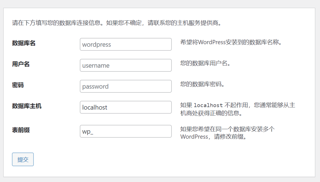 7、填寫數(shù)據(jù)庫信息,數(shù)據(jù)庫信息在虛擬機主面板的數(shù)據(jù)庫信息,數(shù)據(jù)庫主機填寫數(shù)據(jù)庫地址,表前綴可保持默認