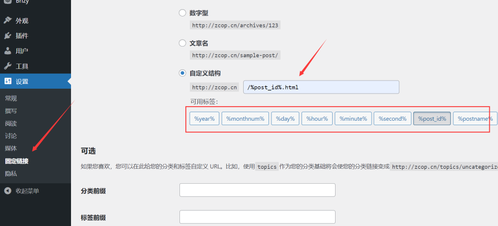 8、設置偽靜態(tài),在設置/固定鏈接中進行設置,