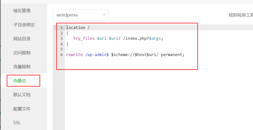 9、設置完成后還要設置 nginx 偽靜態(tài)規(guī)則,