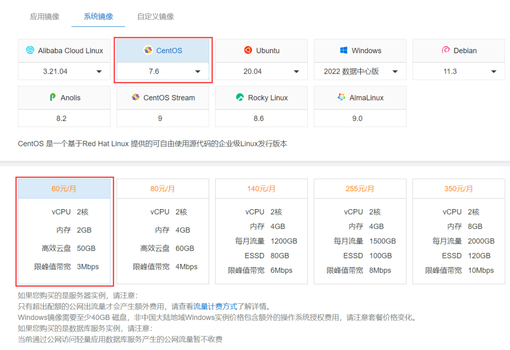 企業(yè)網(wǎng)站通常情況下最初流量都不會太高,可以購買價格較便宜配置低的輕量應(yīng)用服務(wù)器,可以購買2核CPU,2G內(nèi)存,3M帶寬配置的,每月60元,選擇CentOS7.6,