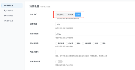 Dcitys城市分站支持動態(tài)參數(shù)、二級域名、目錄形式。 1、動態(tài)參數(shù)形式,生成的連接形式如:…